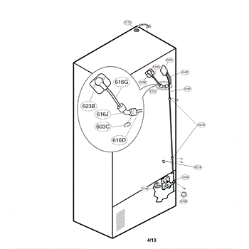 The Water Line Connector is an OEM replacement part for LG refrigerators. It is responsible for connecting the water supply line from the home plumbing to the refrigerator's internal water distribution system, allowing for ice and water dispenser functionality.