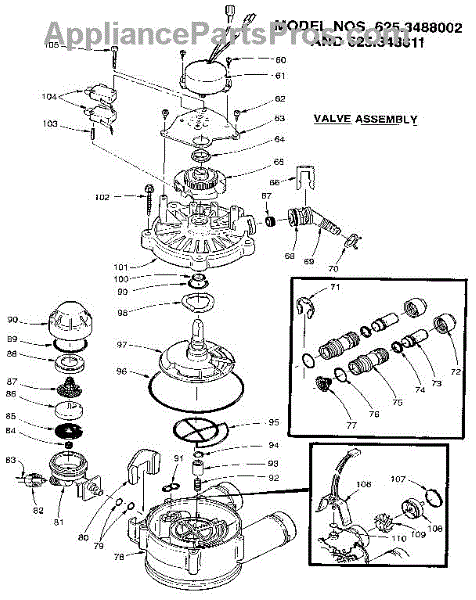 Parts for Kenmore 625.3488002 (6253488002, 625 3488002): Valve Assembly Parts
