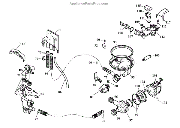 This rear pump housing is the dishwasher's molded enclosure that supports the drain/pump assembly and channels wash and drain water. Replacing a damaged housing restores proper water flow and helps stop leaks. What it does: