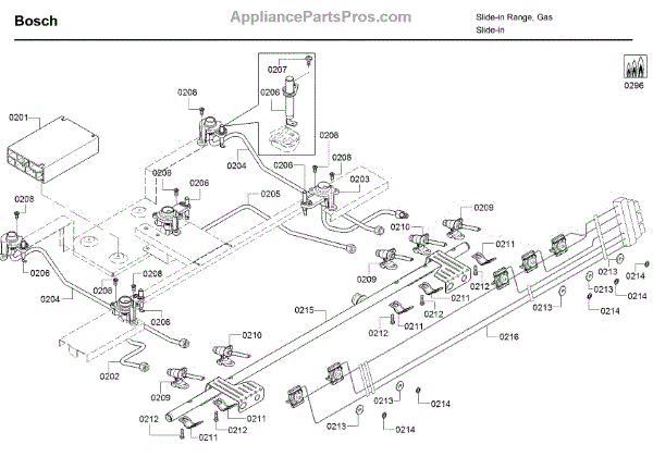 The BURNER TUBE is an OEM part specifically designed for Bosch gas ranges. Each polished steel tube situated below grates routes gas directly to dedicated flame ports heating individual cooking zones.