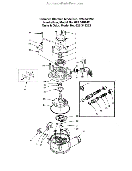 Parts for Kenmore 625.348242 (625348242, 625 348242): Valve Body & Cover / Motor Parts