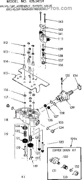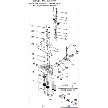 Parts for Kenmore 625.34724 (62534724, 625 34724): Valve Cap Asm, Safety Valve & Flow Washer Housing Parts