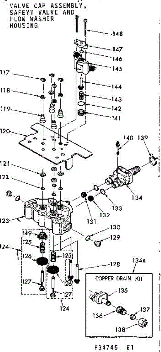 Parts for Kenmore 625.34745 (62534745, 625 34745): Valve Cap Asm, Safety Valve & Flow Washer Housing Parts