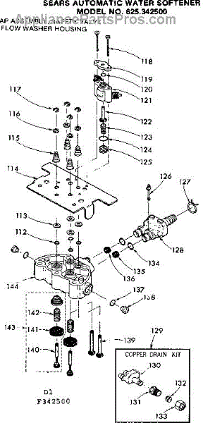 Parts for Kenmore 625.342500 (625342500, 625 342500): Valve Cap Assem., Safety Valve & Flow Wshr Hsng Parts