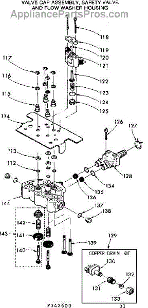 Parts for Kenmore 625.342600 (625342600, 625 342600): Valve Cap Assem, Safty Valve & Flow Washer Housng Parts