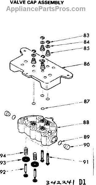 Parts for Kenmore 625.342241 (625342241, 625 342241): Valve Cap Assenbly Parts