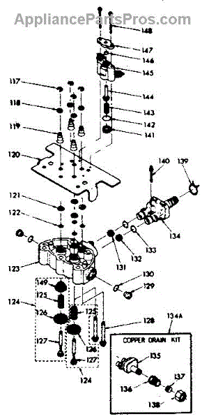 Parts for Kenmore 625.34734 (62534734, 625 34734): Valve Cap Assembly, Safety Valve And Flow Washer Housing Parts