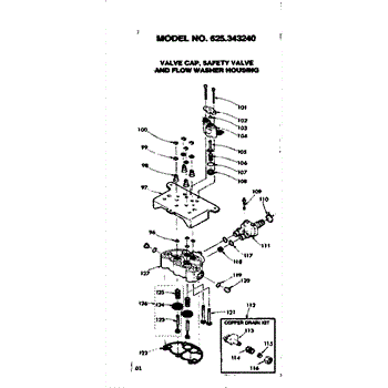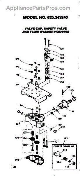 Parts for Kenmore 625.343240 (625343240, 625 343240): Valve Cap Safety Valve And Flow Washer Housing Parts