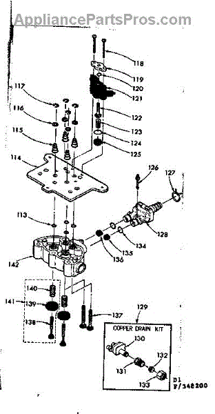 Parts for Kenmore 625.348300 (625348300, 625 348300): Valve Cap Safety Valve & Flow Washer Housing Parts