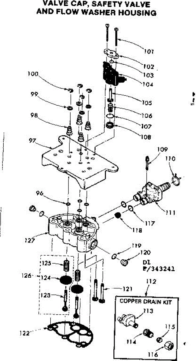 Parts for Kenmore 625.343241 (625343241, 625 343241): Valve Cap Safty Valve Flow Washer Housng Parts