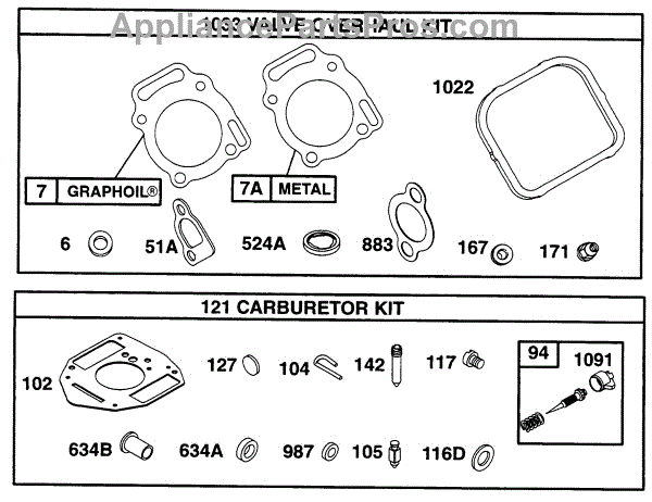 Parts for Briggs & Stratton 290447-0026-03: Valve Kit, Carb Kits Parts