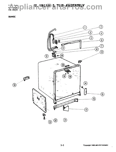 This factory screw secures appliance components to their mounting points. Replace missing, worn, or stripped hardware to restore a tight fit, proper alignment, and quieter operation across the affected assembly.