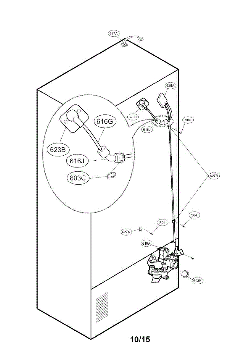Water supply line connects reservoir to dispenser and ice maker. Replace if cracked, leaking, or damaged at connection points. Installs inside refrigerator.