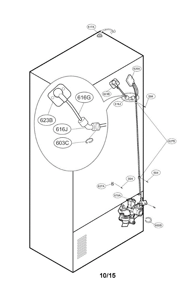 Water supply line connects reservoir to dispenser and ice maker. Replace if cracked, leaking, or damaged at connection points. Installs inside refrigerator.