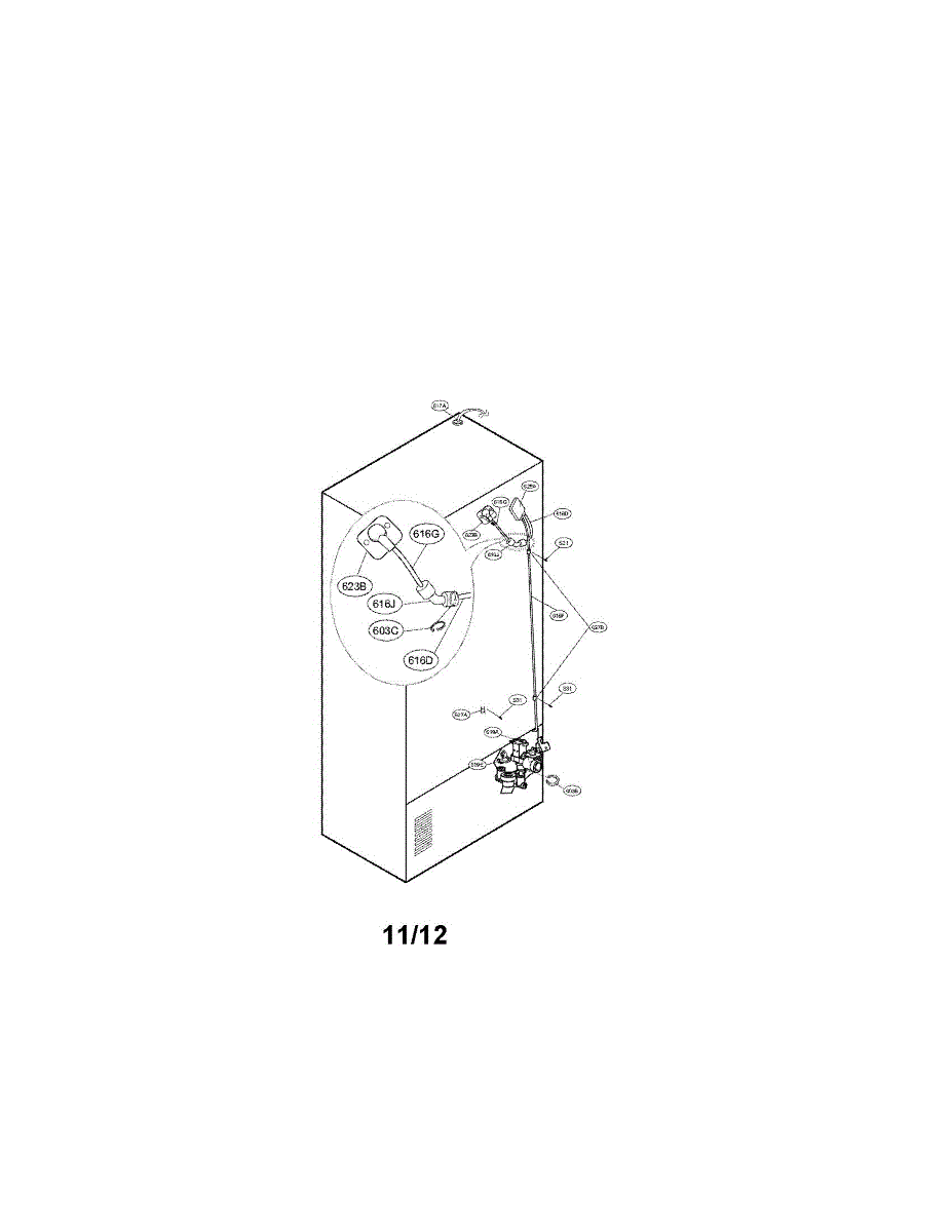 Water supply line connects reservoir to dispenser and ice maker. Replace if cracked, leaking, or damaged at connection points. Installs inside refrigerator.