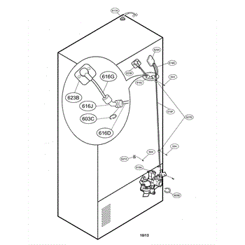 Water supply line connects reservoir to dispenser and ice maker. Replace if cracked, leaking, or damaged at connection points. Installs inside refrigerator.