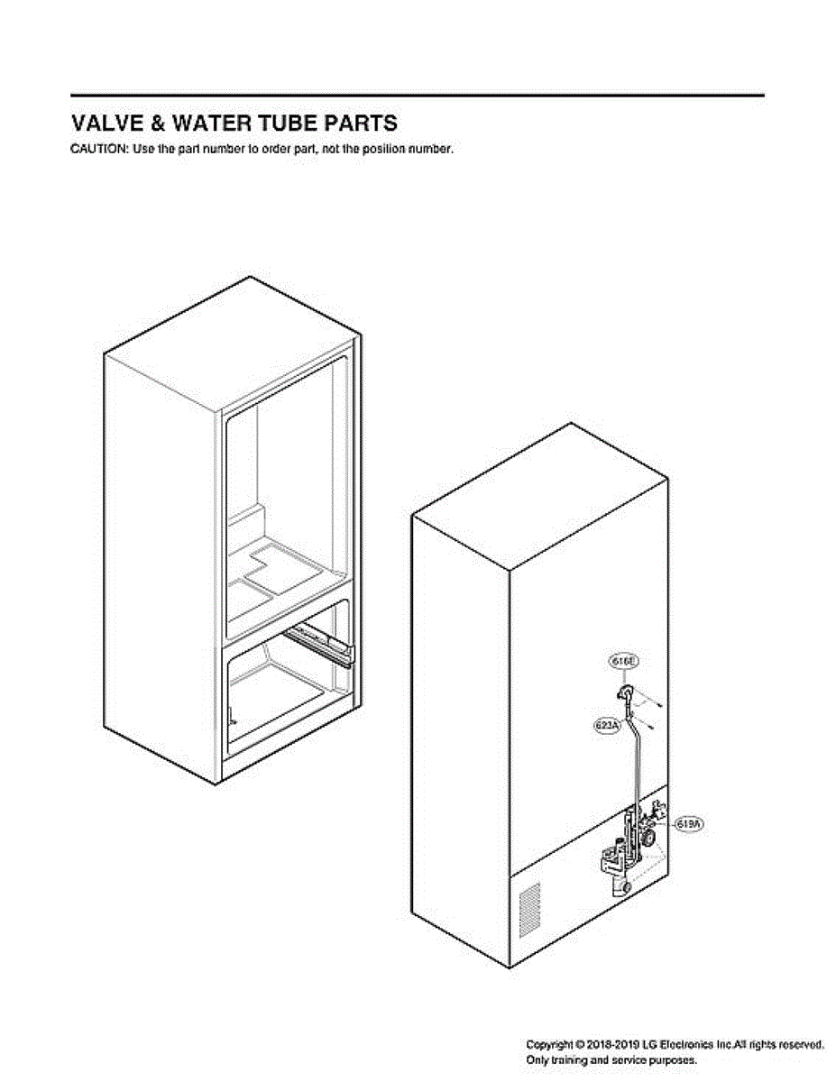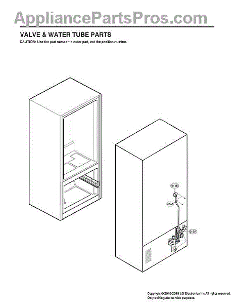 Secures and routes the water tube along the cabinet or door. Replace if cracked, broken, or missing to prevent kinks and keep tubing properly positioned.