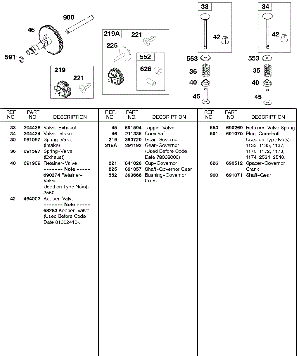 Parts for Briggs & Stratton 243431-0712-99: Valves, Camshaft Parts