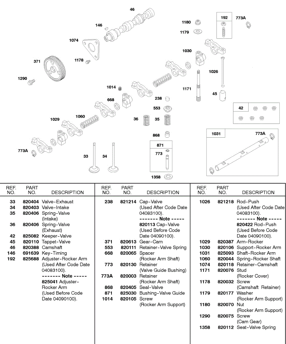Parts for Briggs & Stratton 522447-0376-E2: Valves, Springs, Camshaft, Push Rods Parts