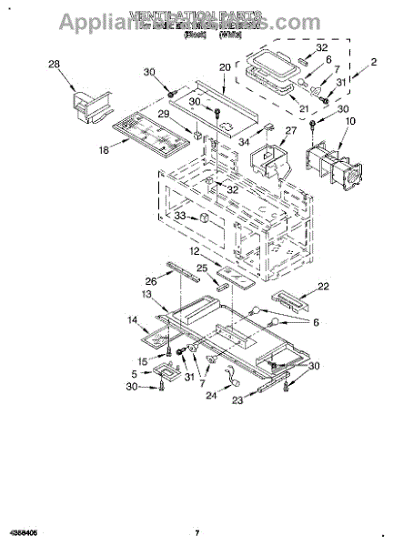 Mounting screw for microwaves. Secures door panels, handles, and internal components. Replace if stripped, missing, or damaged during repairs.
