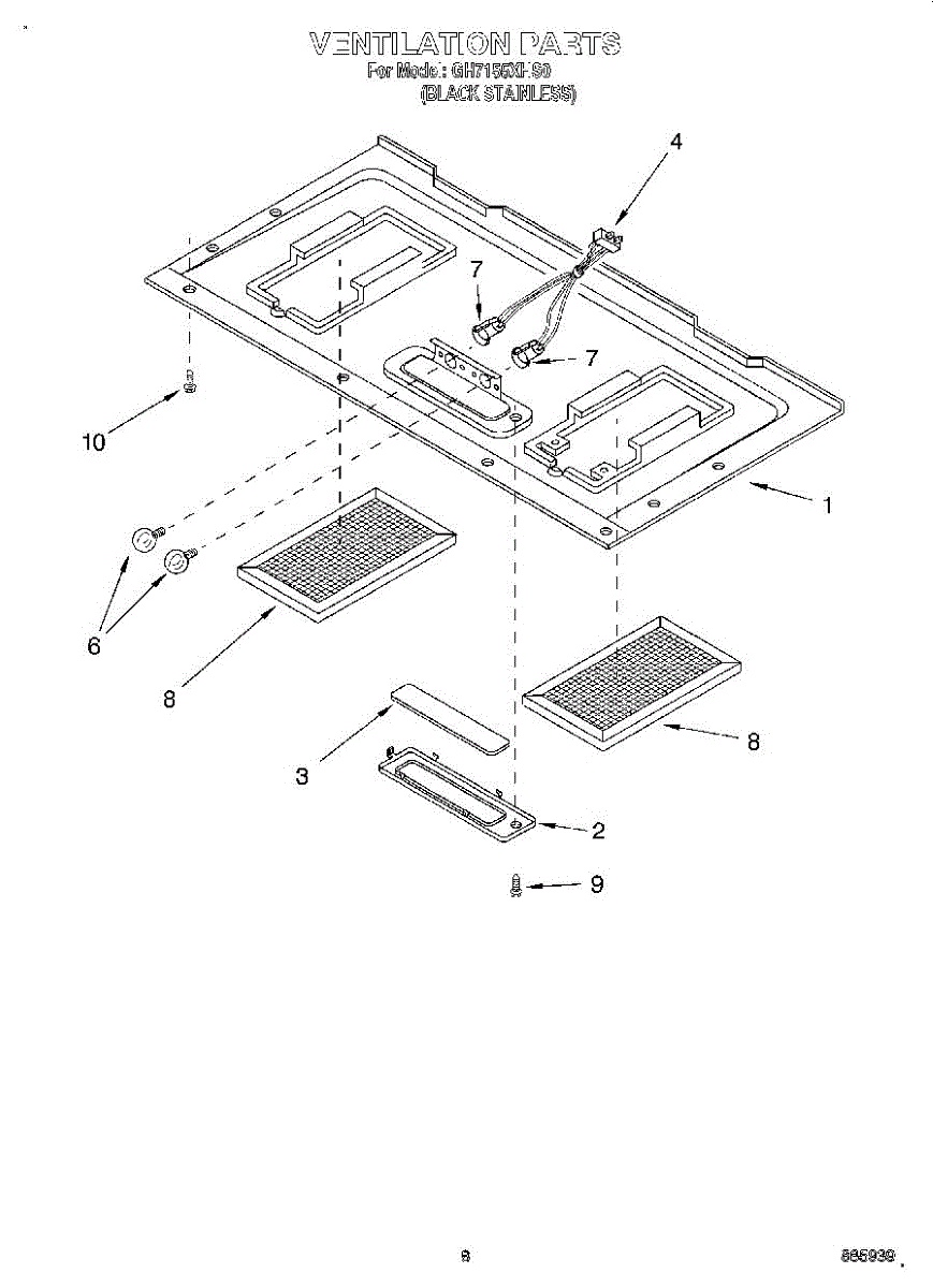 Chrome grease filter (7 5/8 x 5 inch) captures cooking grease and prevents buildup. Replace when discolored or clogged. Verify dimensions match.