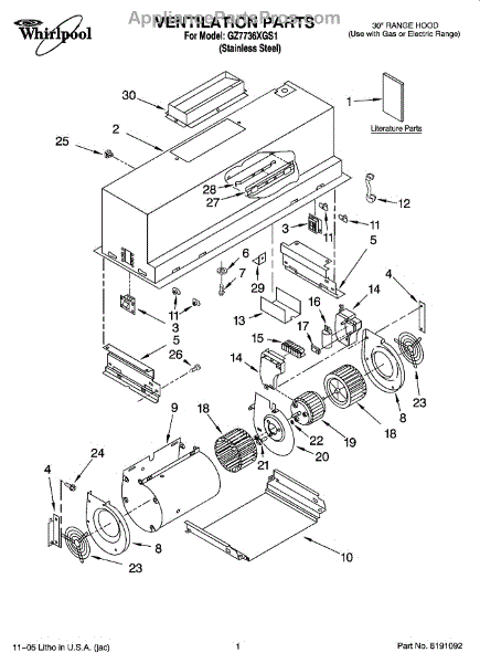 Parts for Whirlpool GZ7736XGS1: 01 - Ventilation Parts