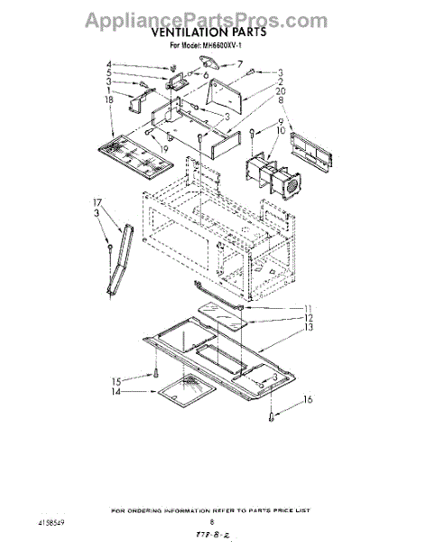 Parts for Whirlpool MH6600XV1: 08 - Ventilation Parts
