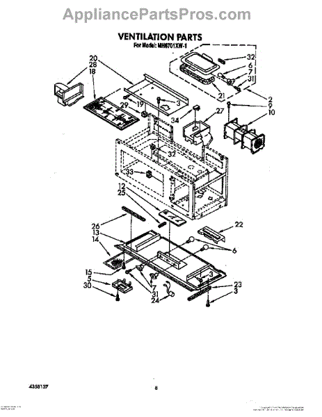 Parts for Whirlpool MH6701XW1: 08 - Ventilation Parts