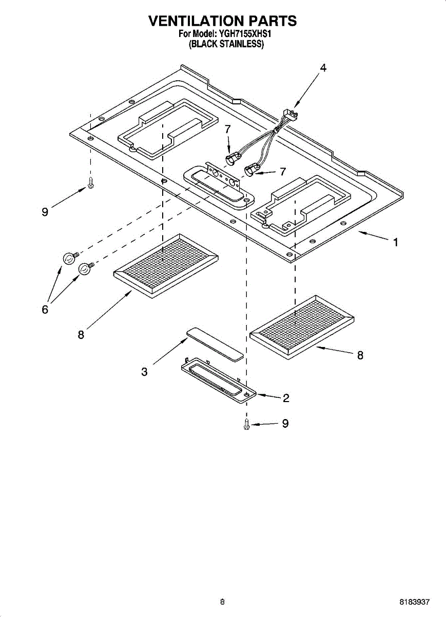 Chrome grease filter (7 5/8 x 5 inch) captures cooking grease and prevents buildup. Replace when discolored or clogged. Verify dimensions match.