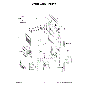 The Blower-Fan is an OEM component compatible with Whirlpool range hoods. Located inside the venting system, this multi-blade centrifugal fan powerfully evacuates cooking fumes, smoke, and odors from the kitchen. It pulls contaminated air through filters and vents it outside through ductwork.