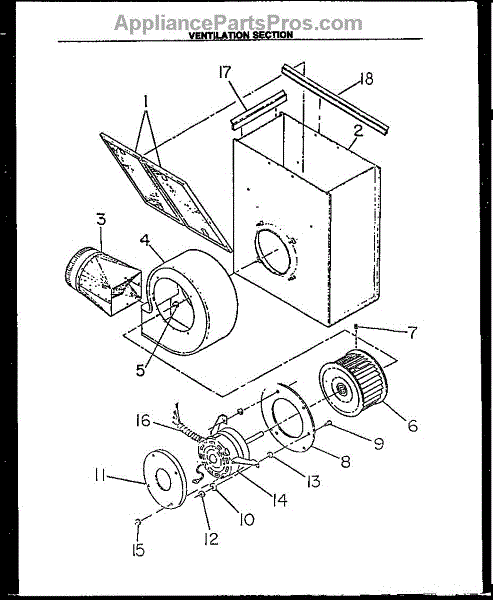Parts for Caloric RDS-648-UK: Ventilation Section Parts