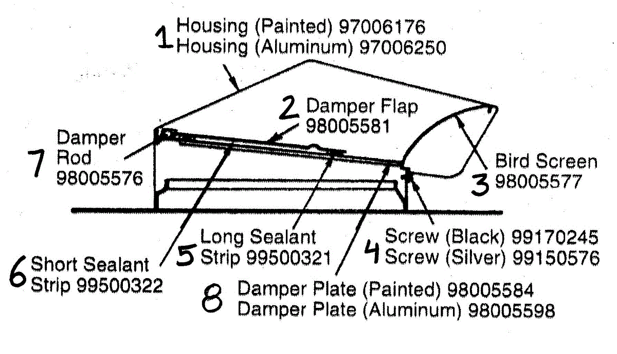 Replacement damper flap for vent systems. Installs in the duct to control airflow direction. Replace if cracked, broken, or no longer sealing properly.