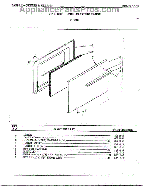 Parts for Frigidaire 37-0117: Visualite Door Parts