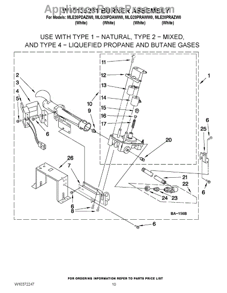 Parts for Maytag MLG20PRAWW0: 06 - W10135231 Burner Assembly Parts