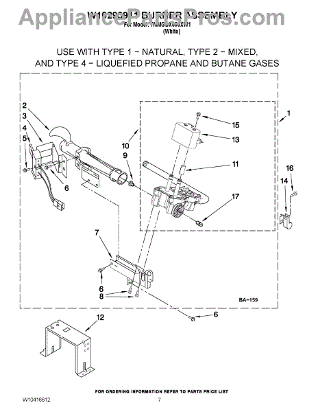 Parts for Maytag 7MMGDX550XW1: 04 - W10293911 Burner Assembly Parts