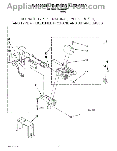Parts for Whirlpool IGD7300WW1: 04 - W10293911 Burner Assembly Parts