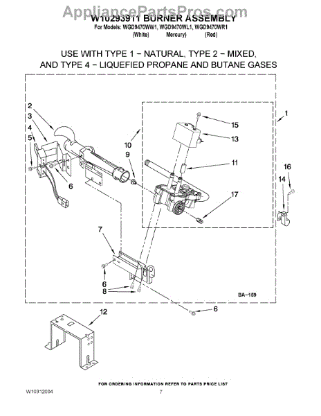 Parts for Whirlpool WGD9470WR1: 04 - W10293911 Burner Assembly Parts