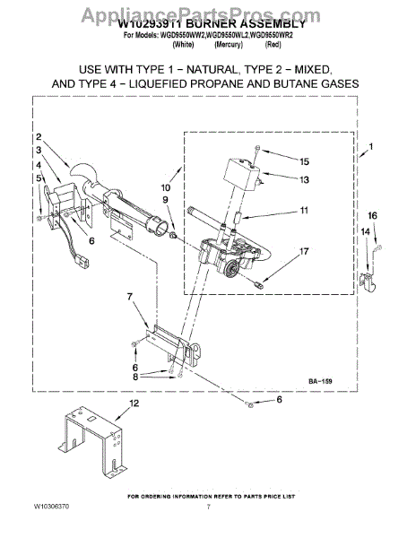 Parts for Whirlpool WGD9550WR2: 04 - W10293911 Burner Assembly Parts