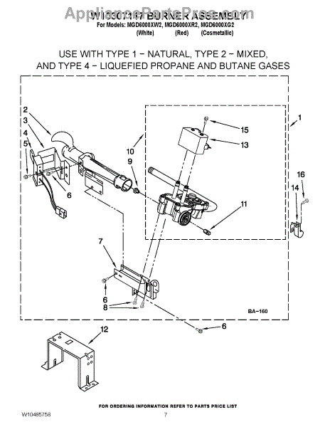 Parts for Maytag MGD6000XW2: 04 - W10307147 Burner Assembly Parts