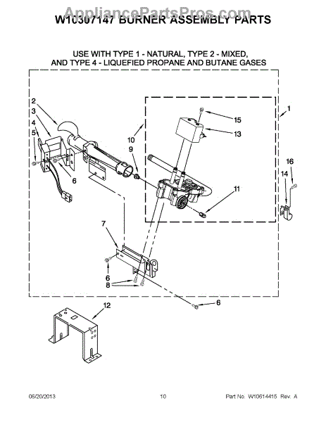 Parts for Whirlpool WGD96HEAW1: 05 - W10307147 Burner Assembly Parts