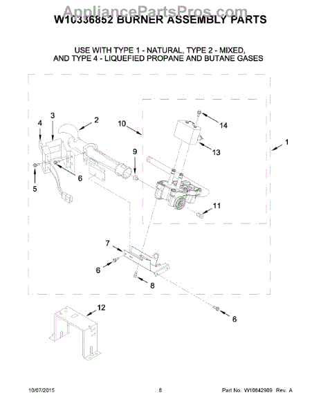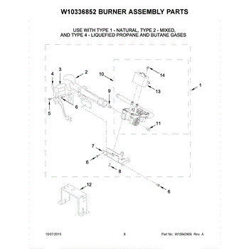 Parts for Maytag MGDX655DW1: 05 - W10336852 Burner Assembly Parts