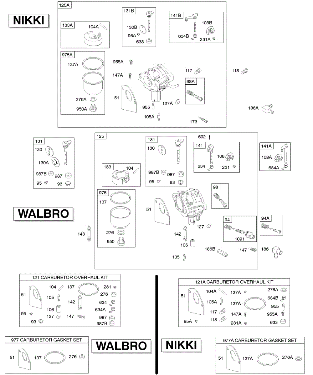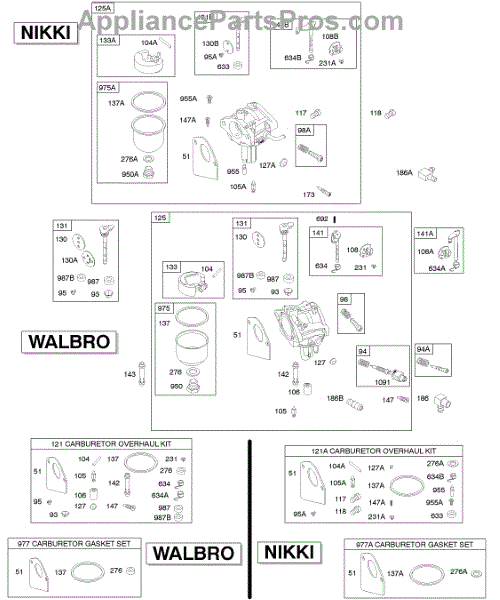 Parts for Briggs & Stratton 28D707-1141-E1: Walbro, Nikki Carburetors, Carburetor Gasket Sets Parts