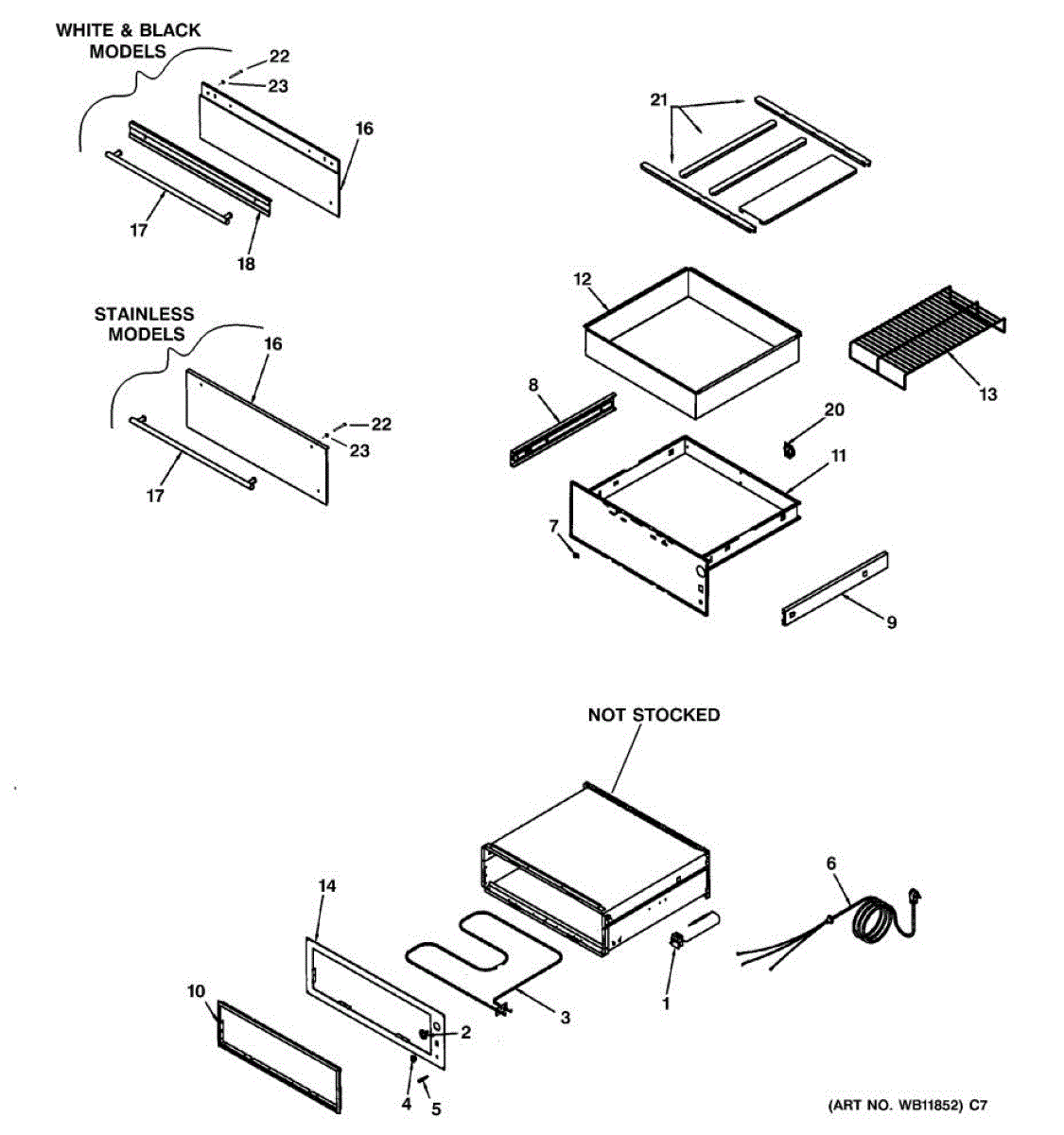 Warming drawer not heating or staying cold? This heating element restores proper warming function. Common repair for temperature issues in warming drawers.