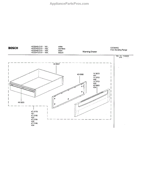 A replacement storage drawer that restores usable under-appliance or interior storage space and smooth sliding operation. Replaces damaged, cracked, or worn drawers to keep stored items safe and accessible. What it does: