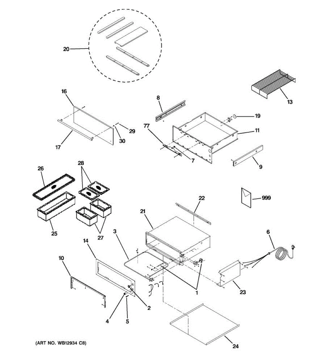 Warming drawer not heating or staying cold? This heating element restores proper warming function. Common repair for temperature issues in warming drawers.