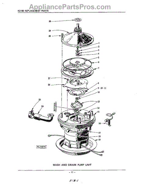 Parts for Kitchenaid KDD68: 15 - Wash And Drain Pump Parts
