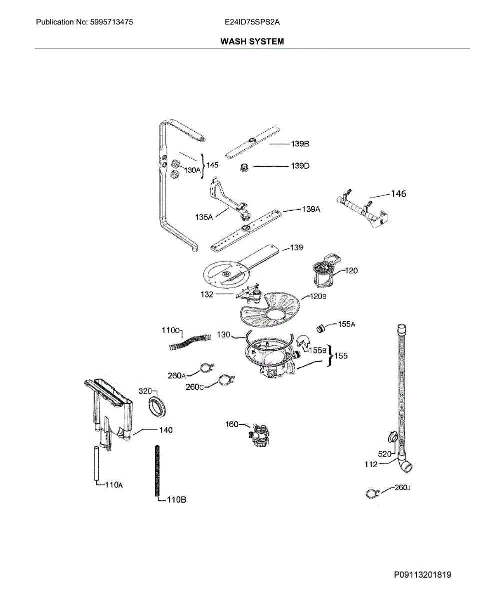 Parts for Electrolux E24ID75SPS2A: Wash System Parts