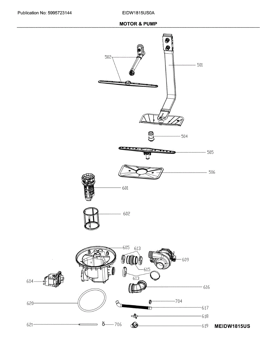 Tube assembly for dishwashers. Routes water between components inside the dishwasher. Replace if cracked, leaking, or disconnected during service.