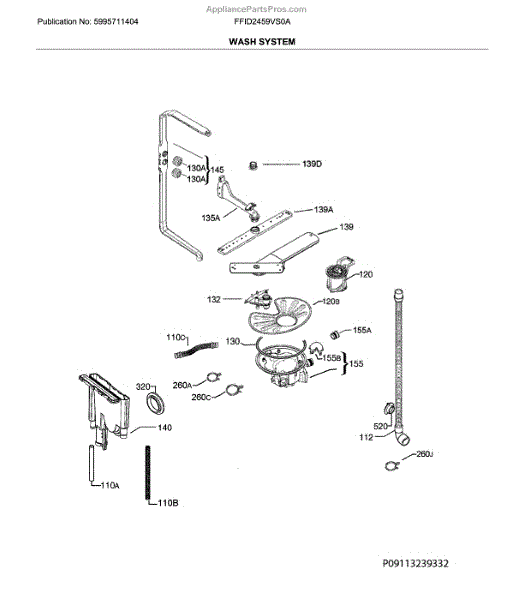 Parts for Frigidaire FFID2459VS0A: Wash System Parts