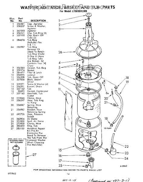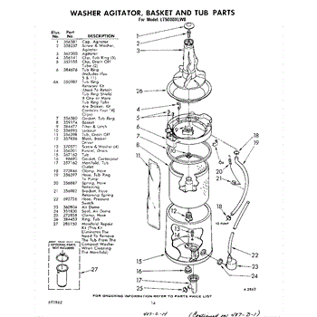 Parts for Whirlpool LT5000XLW0: 14 - Washer Agitator, Basket And Tub Parts